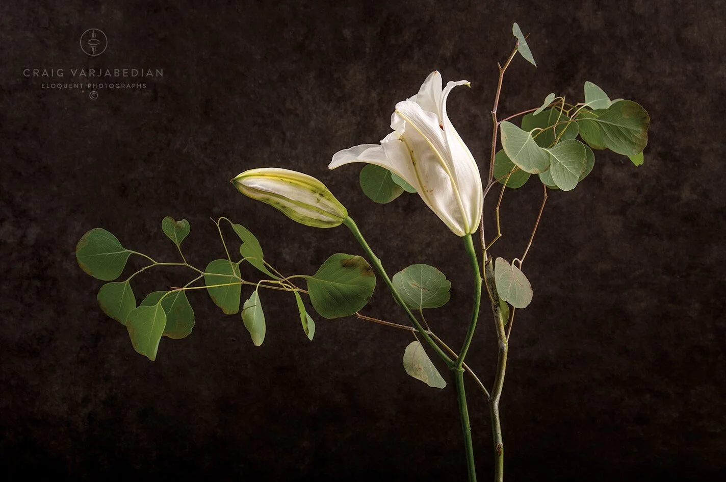Lillies and Eucalyptus Leaves, Covid Hibernation Project, Santa Fe, New Mexico